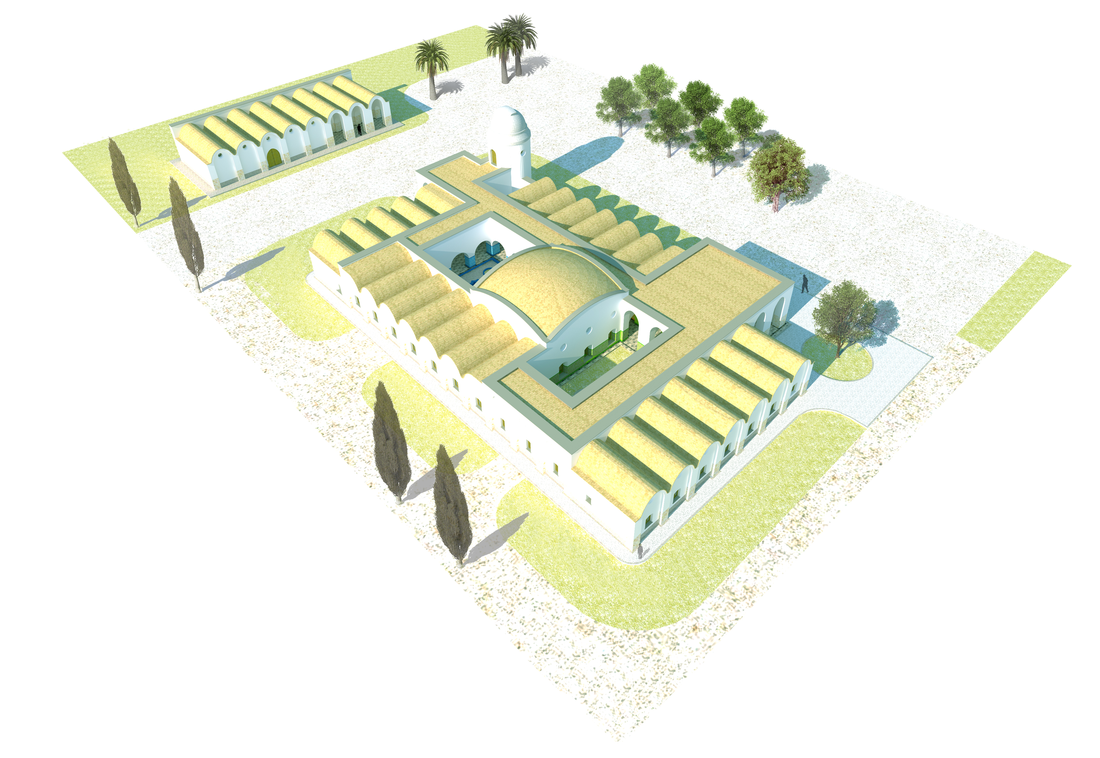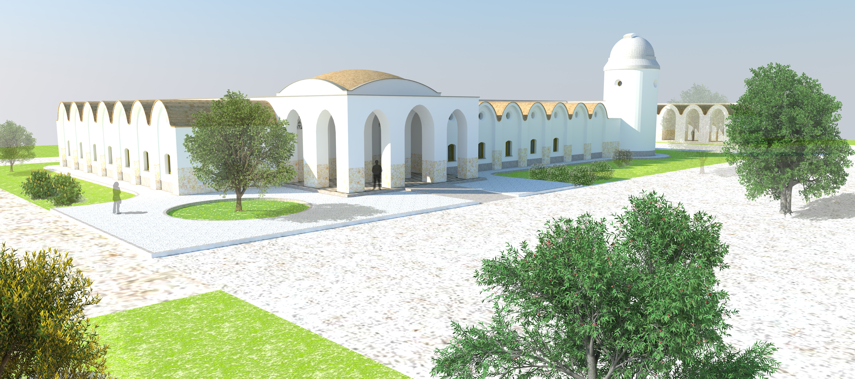 This building is located in the countryside near Seville. A seed of hope over the impending desert regions in Andalusia. Adobe roofs and walls, vaults, domes, arches, …